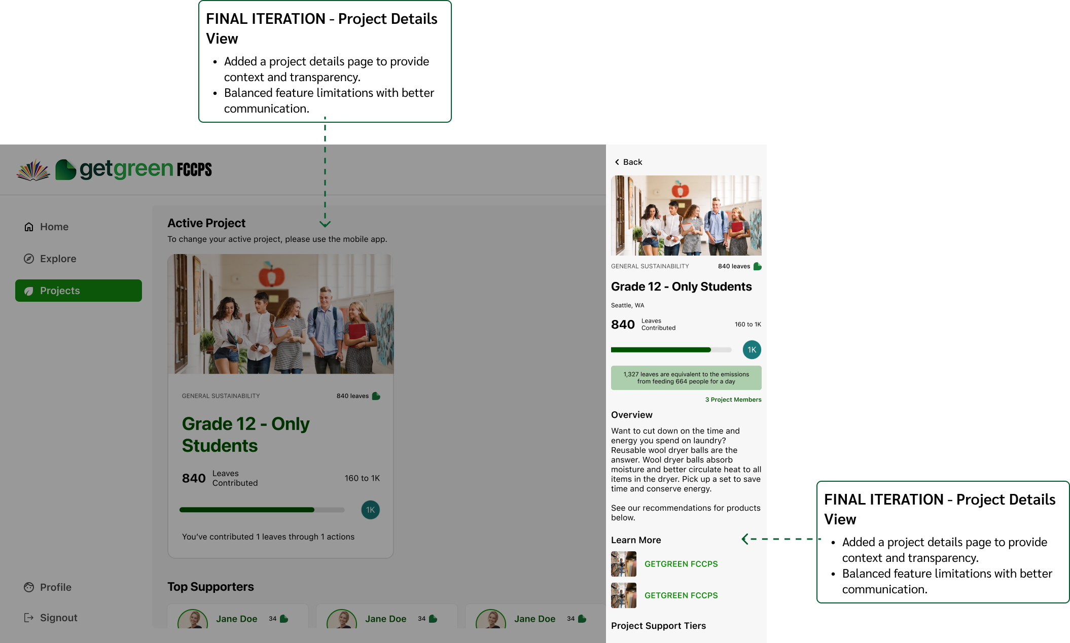 I led a two-month initiative at GetGreen, a sustainability-focused platform, to design a cross-platform experience that extends beyond mobile.