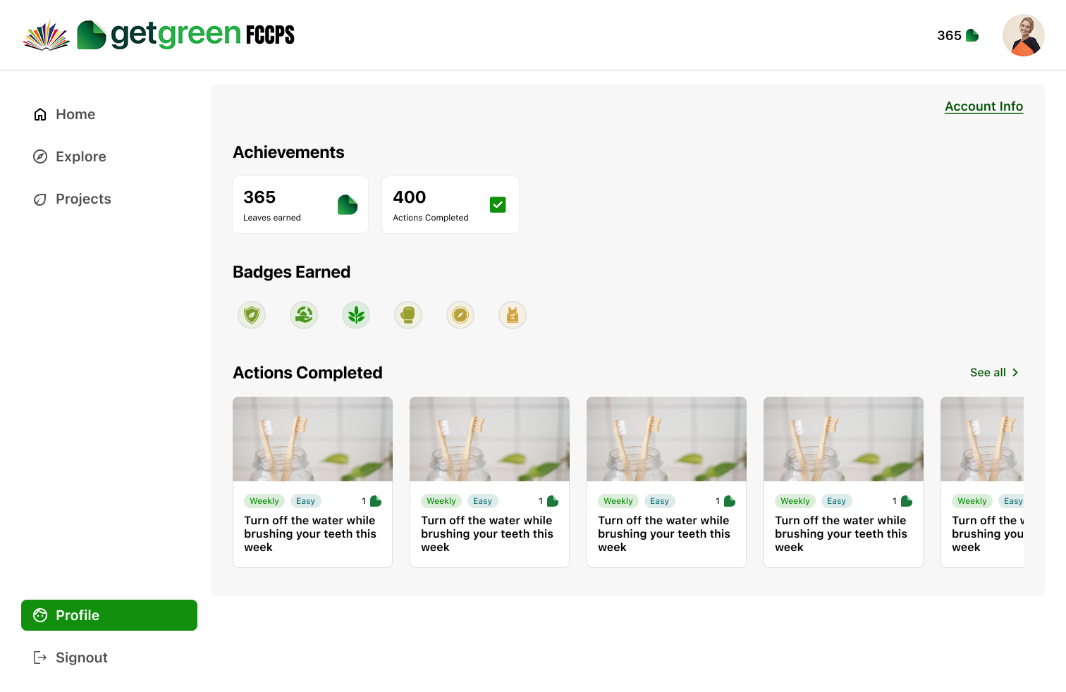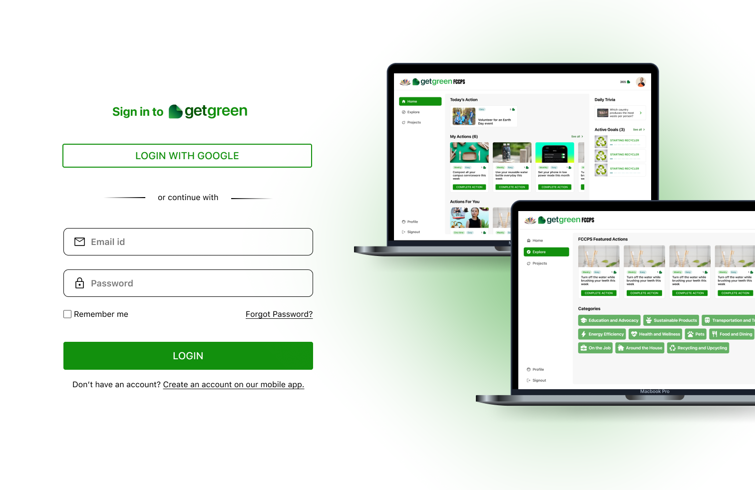 GetGreen is a sustainability platform that empowers individuals and organizations—such as cities, universities, and companies—to achieve their climate goals through everyday, actionable habits. The existing platform was a mobile app that allowed users to log in either individually or via enterprise-specific portals, enabling them to complete tasks that contribute to reducing their carbon footprint and combating climate change.