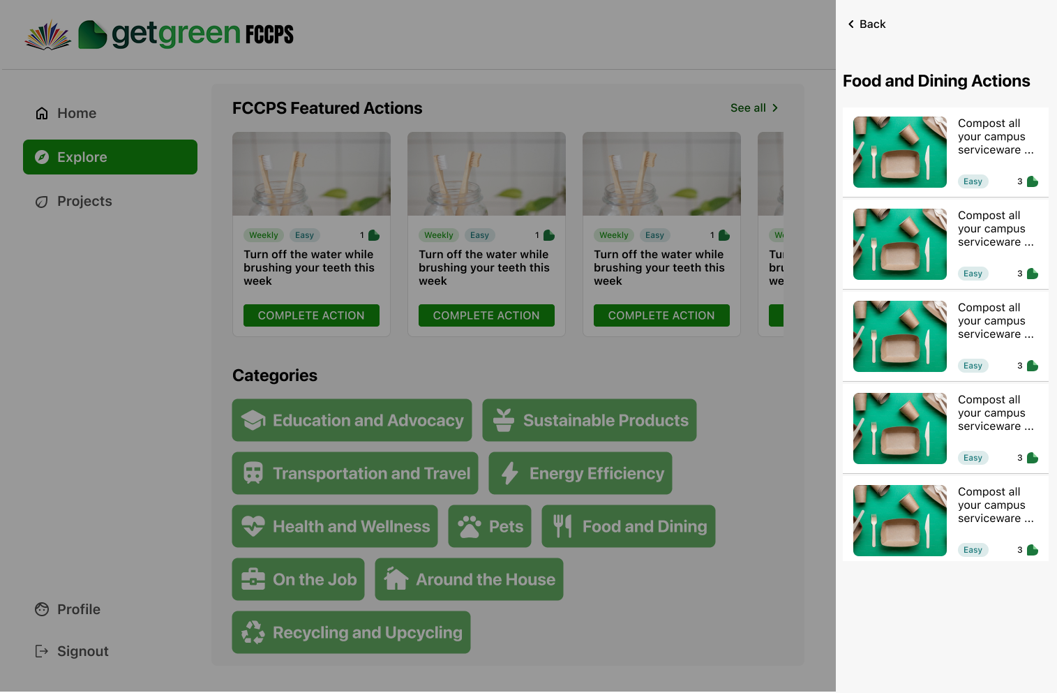 Working as the sole designer alongside a small team of developers and product owners, I translated core product goals into a web-based component app aligned with the mobile experience. Through focused requirement gathering and strategic feature prioritization, I delivered a seamless, non-mobile interface that preserved usability, design consistency, and user intent—enabling individuals and organizations to take actionable steps toward sustainability, regardless of platform.